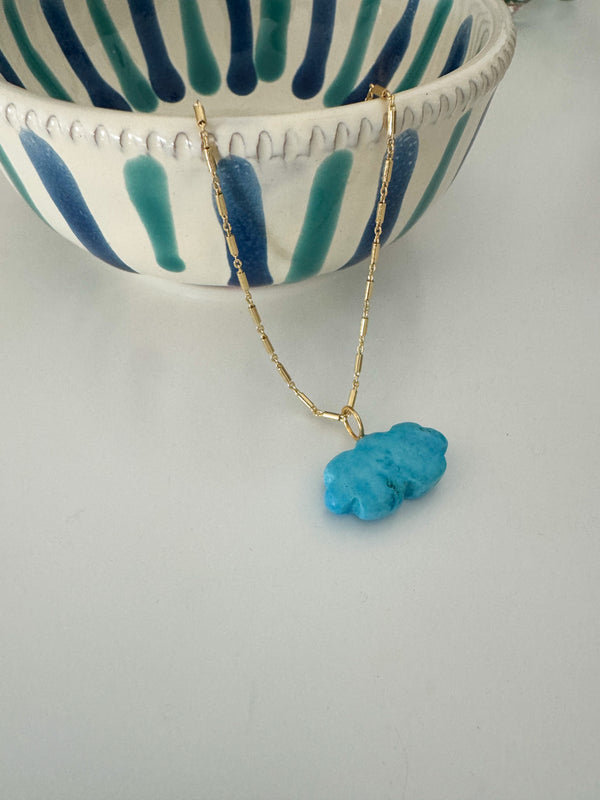 Handmade natural cloud shaped turquoise stone pendant on a tube silhouette chain.